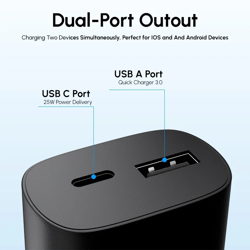 Option 1: 25W EU Black USB+Type C 2 Port Charger(Only Charger)