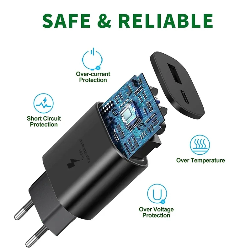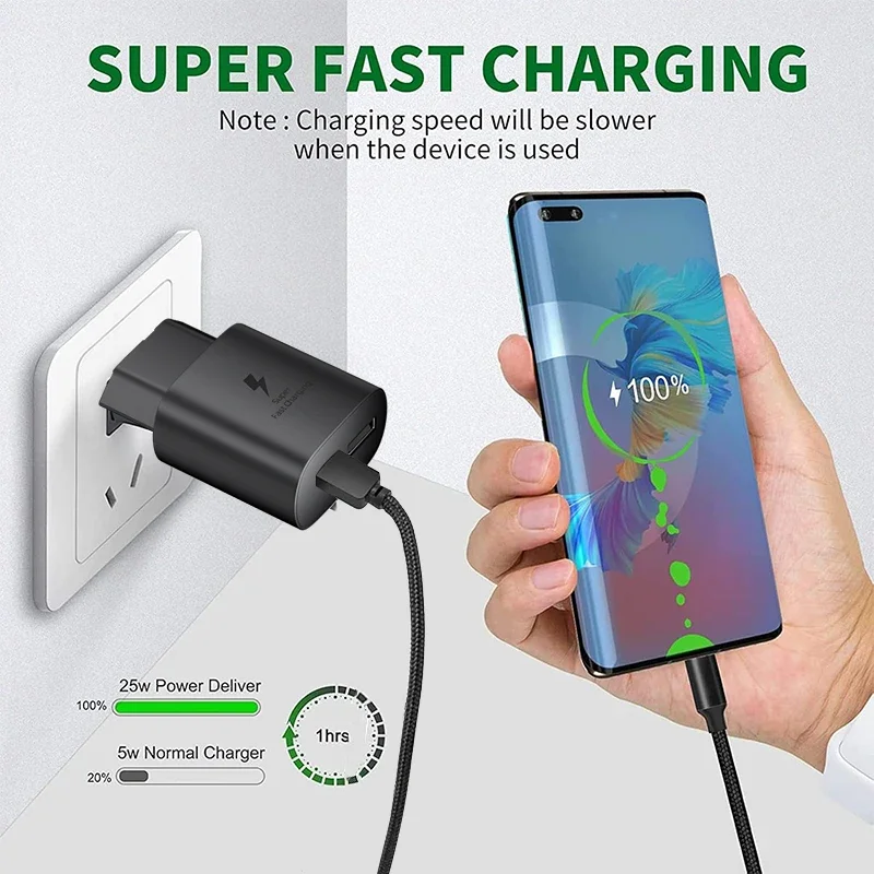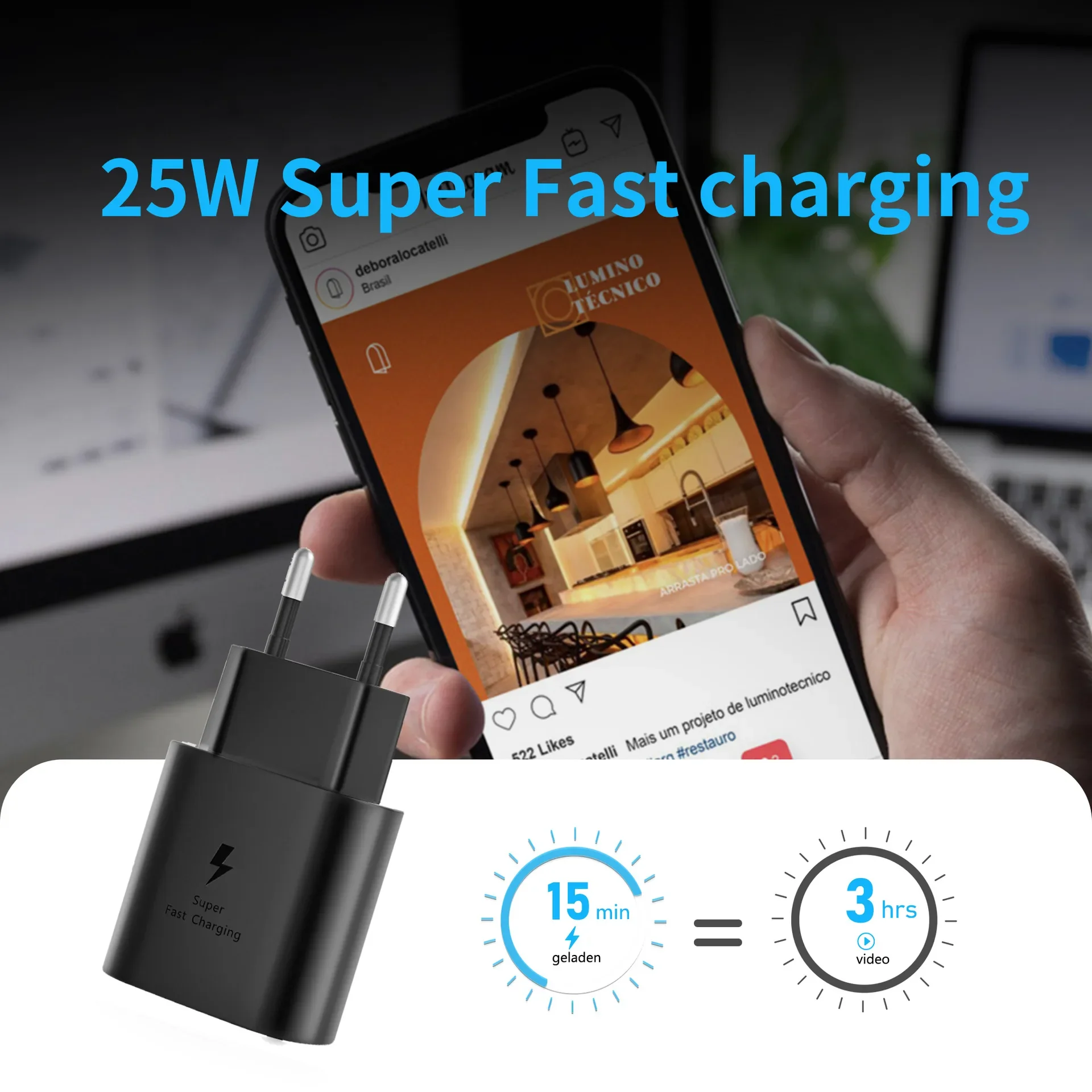 2 port 25W Samsung Type C USB Charger 5A Cable PD Super Fast Charging For Samsung S25 S24 S23 Ultra Plus A34 A35 A52s A54 A55